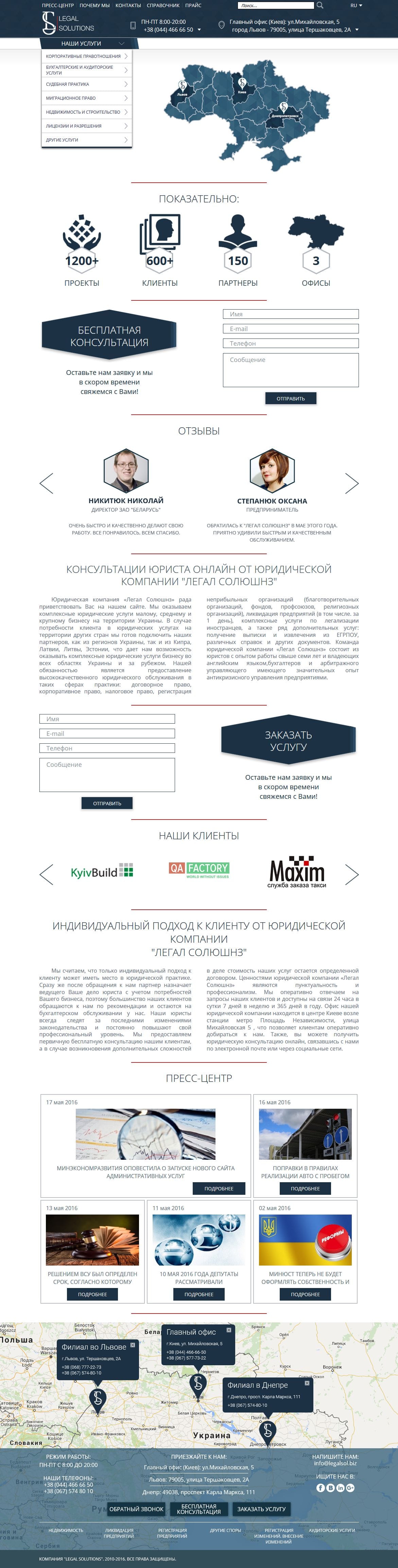 Legal company Legal Solutions provides comprehensive legal services to small, medium and large businesses in Ukraine. Our task was to create a technologically ergonomic and understandable website for the client, which would be distinguished by a wide range of services and at the same time the convenience of moving around the site. After the delivery, the task of promoting the site by optimizing it for search engines was received. Marketing studio "Marketing Mix" did a tremendous job of internal optimization and gave rise to link promotion.