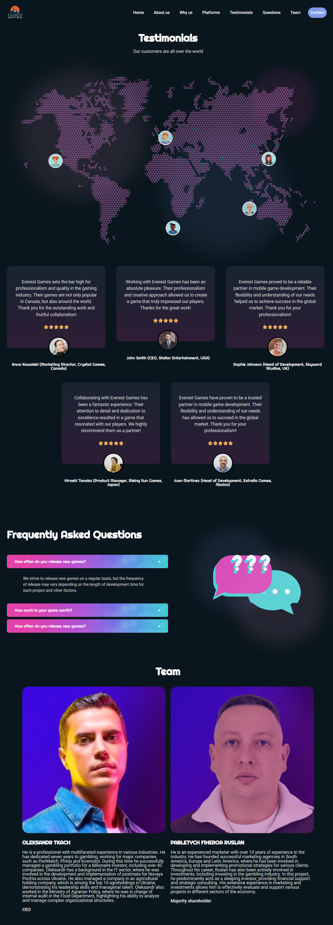 Привіт! Хочу висловити величезний респект команді Ммікс від нас в Everest Games. Ці хлопці перетворили наш сайт і злетіли з нашим SEO на новий рівень. Від миттєвого завантаження сайту до вершин пошукових запитів завдяки їхньому SEO-чарівництву - вони зробили все на найвищому рівні. Контент, метадані, заголовки - все ретельно продумано. І не варто забувати про просування, яке серйозно посилило нашу онлайн-видимість і залучило купу нових гравців. Робота з Ммікс - це просто знахідка для будь-кого, хто хоче бути на крок попереду в інтернет-просторі!