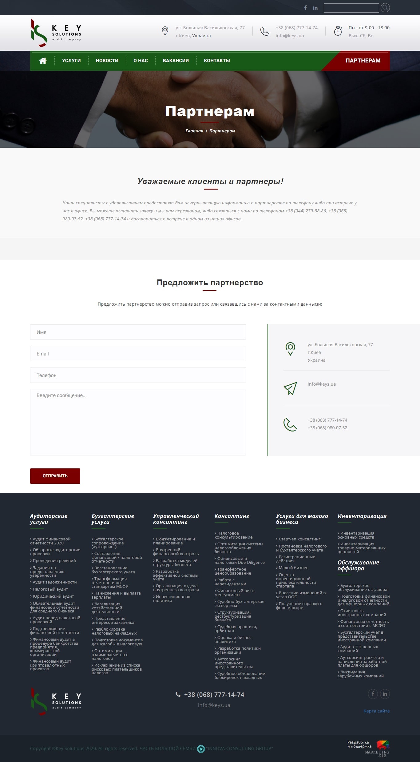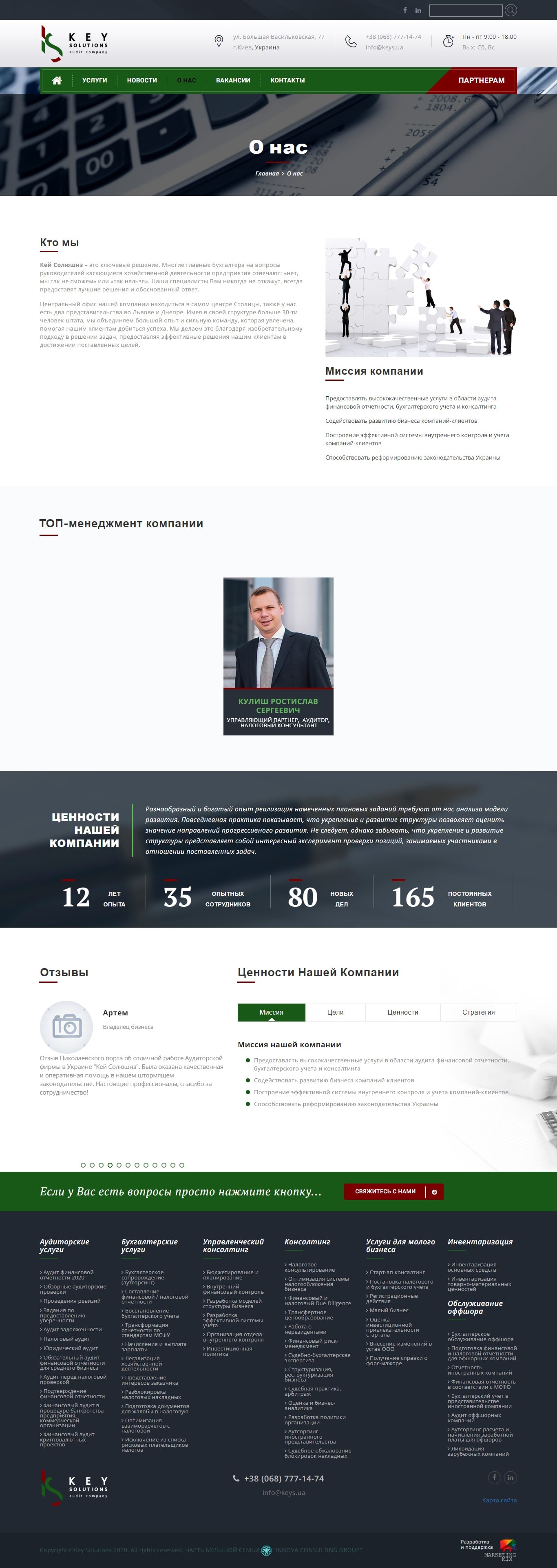 Висловлюю подяку студії «Маркетинг Мікс» за розробку сучасного та якісного сайту. Робота виконана професійно та вчасно.