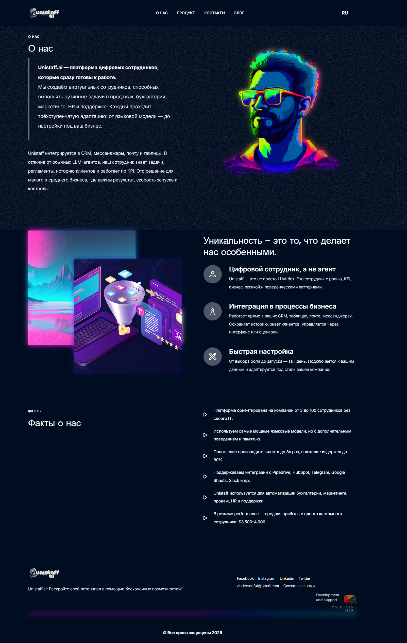 Универсальная платформа для построения бизнеса с использованием AI-работников Unistaff.ai